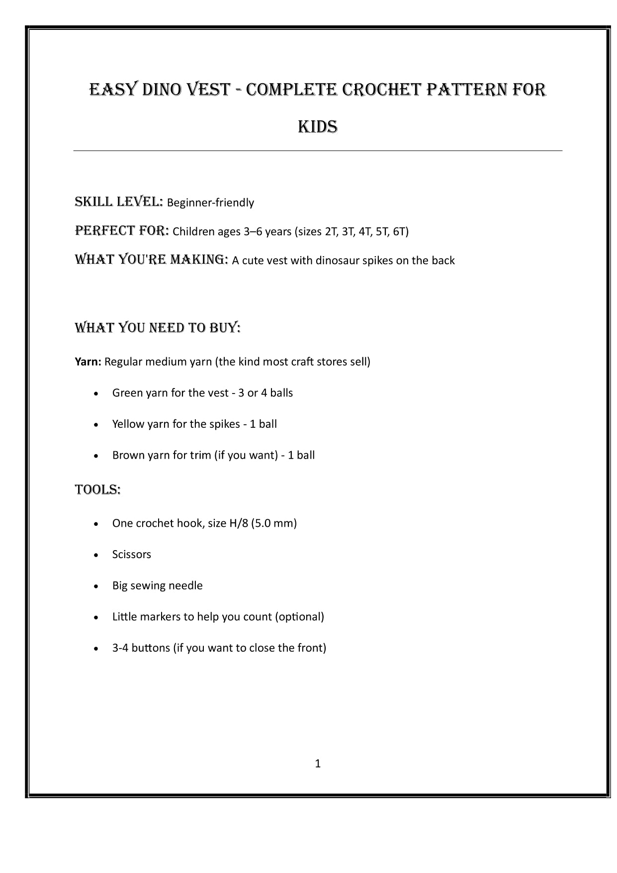 Includes 4 sizes in one pattern: 3 years, 4 years, 5 years, and 6 years—so you can grow with your child or make thoughtful gifts for others.